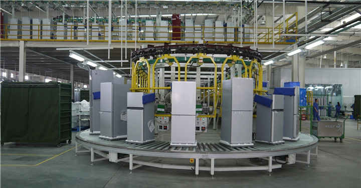 1、可以實現冰箱產線零部件組裝輸送、門體及箱體發泡、抽真空測試、產品性能檢測、成品自動化下線等工序地高效組合,極大的提高生產效率。