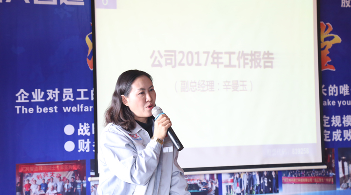 匯興智造副總經(jīng)理辛曼玉以一句“2017,您幸福嗎?”開啟大會(huì)的第六項(xiàng)議程,作2017年年度工作報(bào)告。辛副總說(shuō):“在2017年,匯興智造實(shí)現(xiàn)了16年來(lái)都沒(méi)有實(shí)現(xiàn)的銷售業(yè)績(jī);成立了研究院、技術(shù)研究中心等研發(fā)機(jī)構(gòu),公司的研發(fā)能力得到提高;調(diào)整了產(chǎn)品結(jié)構(gòu),拓展了行業(yè)范圍,并且守護(hù)住了傳統(tǒng)行業(yè),夯實(shí)了業(yè)績(jī);實(shí)現(xiàn)了配件事業(yè)的業(yè)績(jī)倍增,取得喜人成績(jī);加強(qiáng)了人力資源建設(shè),老員工在進(jìn)步,能力在提升,而高學(xué)歷、高層次員工的加盟,讓匯興智造如虎添翼。這一年,雖然我們經(jīng)歷了困難、挫折,但取得的成績(jī)是驕人的。匯興智造在往前走,往上走,我們?cè)谏掀碌倪^(guò)程中,會(huì)氣喘,會(huì)腿酸,很累,但當(dāng)我們爬上山頂?shù)臅r(shí)候,那種‘會(huì)當(dāng)凌絕頂,一覽眾山小’的豪情和喜悅卻是無(wú)法比擬的。所以,如果有人問(wèn):2017,您幸福嗎?我會(huì)回答:我很幸福!”