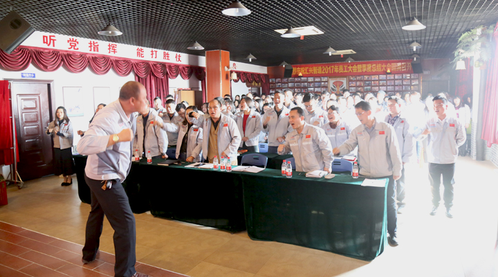 “為夢(mèng)想沖刺,我是匯興智造的一名忠誠(chéng)戰(zhàn)士,殺!殺!殺!”,震天喊聲響徹會(huì)場(chǎng),匯興人殺掉困惑,殺掉不妥,殺掉阻礙,挺胸抬頭,勇往直前。“雄關(guān)漫道真如鐵,而今邁步從頭越”,2017已不可追,2018正等著匯興智造再創(chuàng)佳績(jī)。