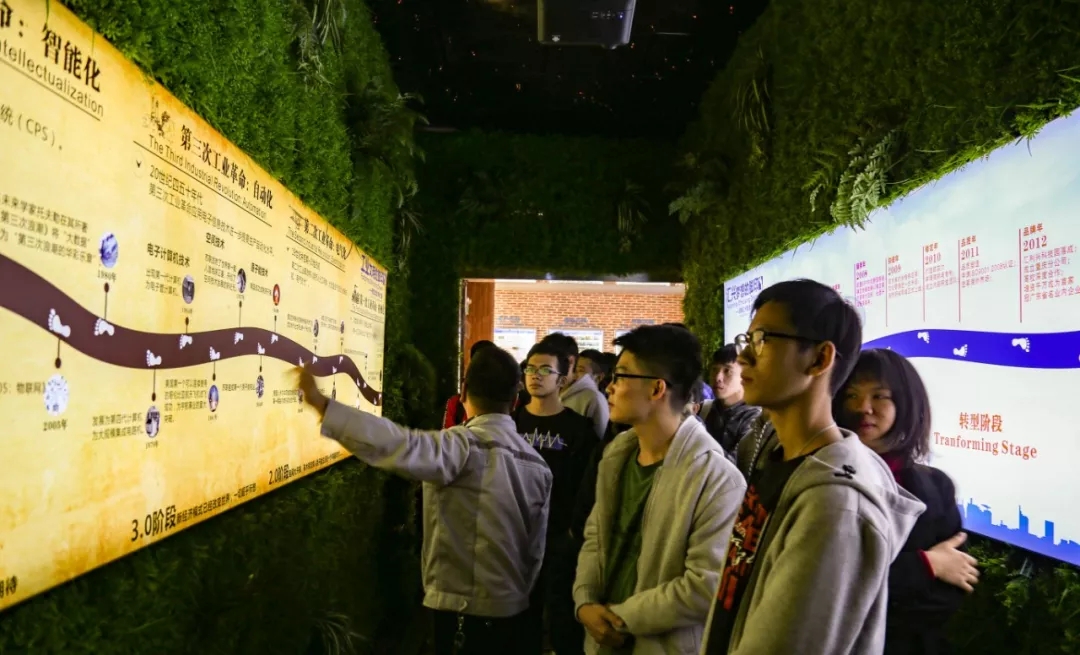 在《先進(jìn)制造技術(shù)》課程的實(shí)踐教學(xué)環(huán)節(jié)積極推進(jìn)學(xué)生深入企業(yè)強(qiáng)化實(shí)踐教學(xué),2019年12月6日下午,東莞理工學(xué)院機(jī)械工程學(xué)院2016級(jí)機(jī)械電子專業(yè)大四學(xué)子在張老師的帶領(lǐng)下蒞臨廣東匯興精工智造股份有限公司(簡(jiǎn)稱:匯興智造)參觀“工業(yè)4.0技術(shù)”。在匯興智造人事行政部經(jīng)理袁侃、知識(shí)產(chǎn)權(quán)部經(jīng)理蔣明華的陪同下,東莞理工學(xué)院師生參觀了公司企業(yè)文化、工業(yè)4.0智能裝備體驗(yàn)館、智能裝備組裝車間以及黨建文化長(zhǎng)廊。