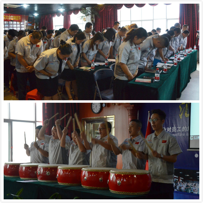 會議由配件事業部副總監楊思主持。會議在激昂的《匯興之歌——用心智造世界》拉開帷幕,全體參會人員向企業“孝道、商道、人道”行三鞠躬禮,宣讀企業愿景——成為中國領先的整廠自動化系統解決方案提供商,企業使命——做受尊敬的好人、造受尊敬的產品、辦受尊敬的企業、建受尊敬的平臺,企業精神——用情做人、用心做事,團隊精神——忠誠團結、勤奮進取。隨后,匯興智造董事長鐘輝帶領子公司、分公司、辦事處領導共同敲響士氣鼓,鼓舞匯興智造牢記初心,砥礪前行。
