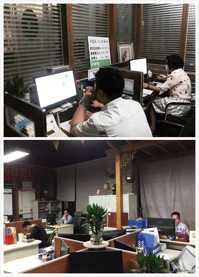 因訂單暴增,人手不足,辦公室人員在下班時間主動到物控部幫工,不抱怨,不放棄。匯興智造董事長鐘輝:“看著他們勤勞而又高大的身影,我感動太多!”