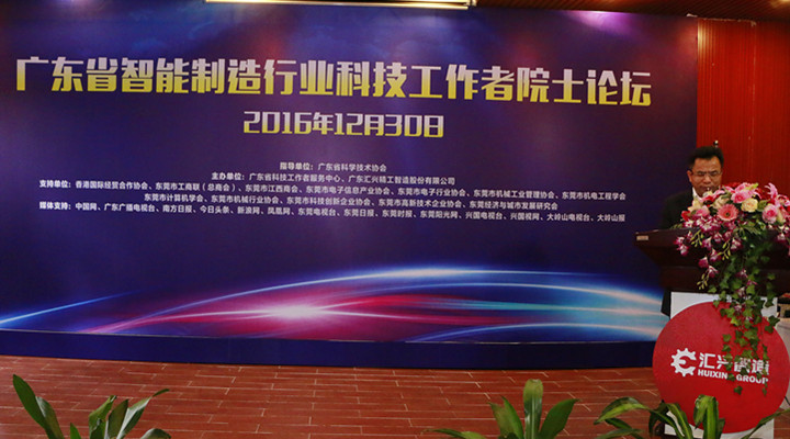 2016年1230日上午,由廣東省科學技術協會指導、廣東省科技工作者服務中心和廣東匯興精工智造股份有限公司(股票代碼:839258共同舉辦的“廣東省智能制造行業科技工作者院士論壇”在匯興智造東莞總部隆重舉行。中國工程院院士孫玉、廣東省科學技術協會副主席馮日光、廣東省科技工作者服務中心主任廖仕明、東莞市科學技術協會副主席許為豪、東莞市大嶺山鎮副鎮長蔡容穩、東莞職業技術學院計算機系主任胡選子、江西理工大學機電工程學院書記劉政、副院長劉祚時、東莞理工學院原副書記王江水、東莞理工學院原副校長鄒小平、江西省興國縣委常委李明海、武警126師原政委趙燕清、意大利智能制造工程中心顧問高級工程師艾德羅教授、匯興智造董事長鐘輝、東莞職業技術學院副教授辛曼玉,以及來自全國各地的優秀的智能制造行業代表200多人參加了論壇。