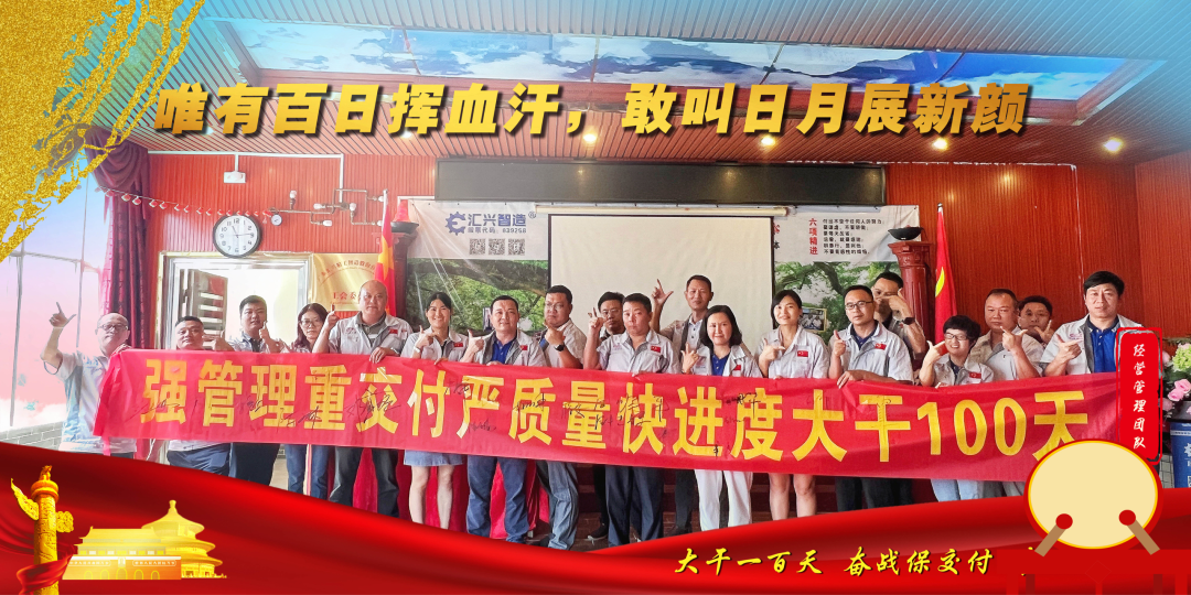 “決戰(zhàn)”的號角已經吹響,一場沒有硝煙的戰(zhàn)役已經開啟,在接下來的100天里,匯興智造的全體員工將以昂揚的姿態(tài)奮勇前行,向著目標全力沖刺!